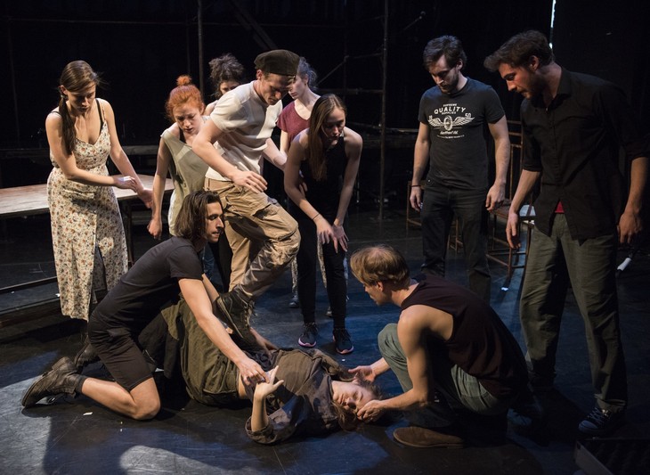 A dráma főbb szerepein túl a játszók többször váltanak karaktert, s lépnek színre néha csak jelzésértékű jelmez változtatásokkal. A feszült, erős, sodró drámaiságú mű lehetőséget ad a 14 fős osztály tagjainak, hogy élhessenek mindazon képességekkel és lehetőségekkel, melyeket az évek során szereztek és sajátítottak el.