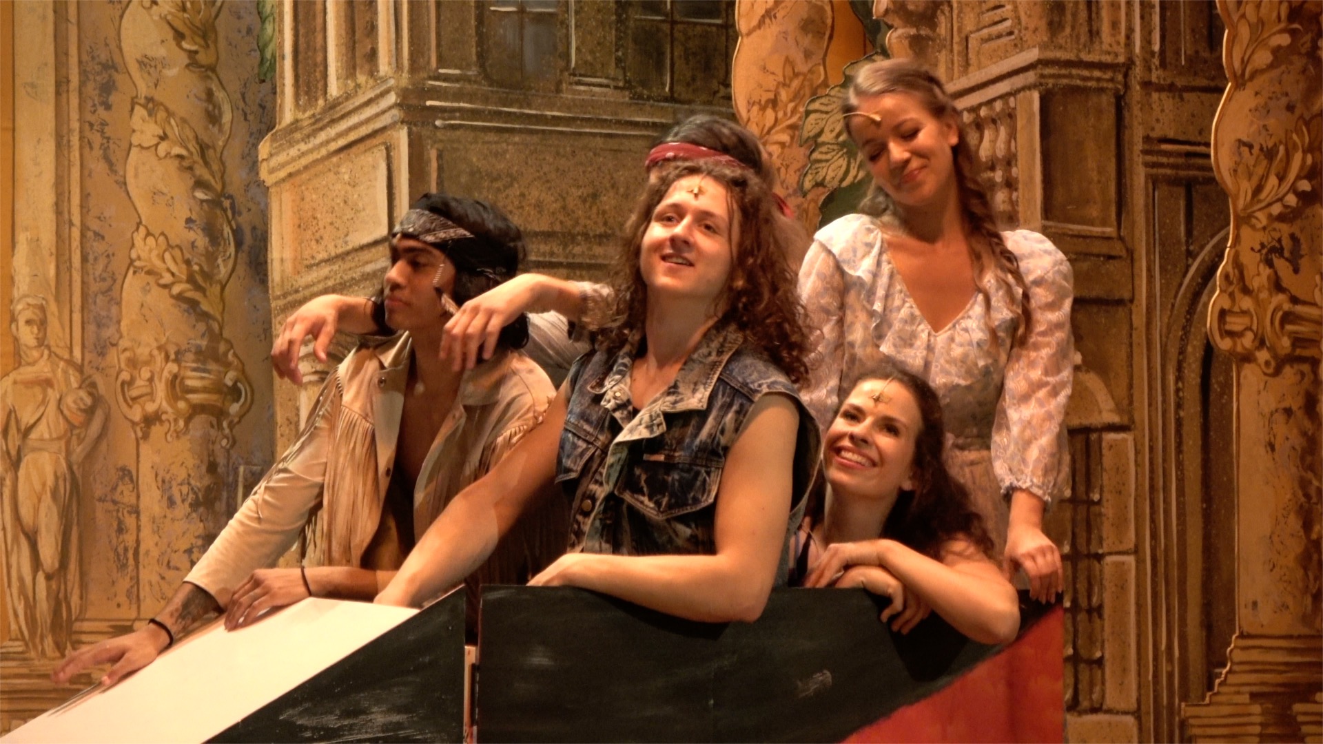 Az Apácák kezdetén a színpadon hat habitusba öltözött nővel találkozhatunk, akik kezüket tördelve mutatkoznak be és köszöntenek adománygyűjtő kis műsorukban. A nézők is játékba kerülnek, mint az előadás által meghatározott közönség, ezért a Kelemen László Kamaraszínház teljes egészében díszletté válik. A Hair esetében már megjelenik az a bizonyos negyedik fal, sőt a szegényes díszletelemeknek köszönhetően leválik a térről. A fiatalok nem szólnak ki már a közönségnek, mégis a tömeg - beleszokva az állandó tapsolásba - minden zenés jelenetet jutalmaz.